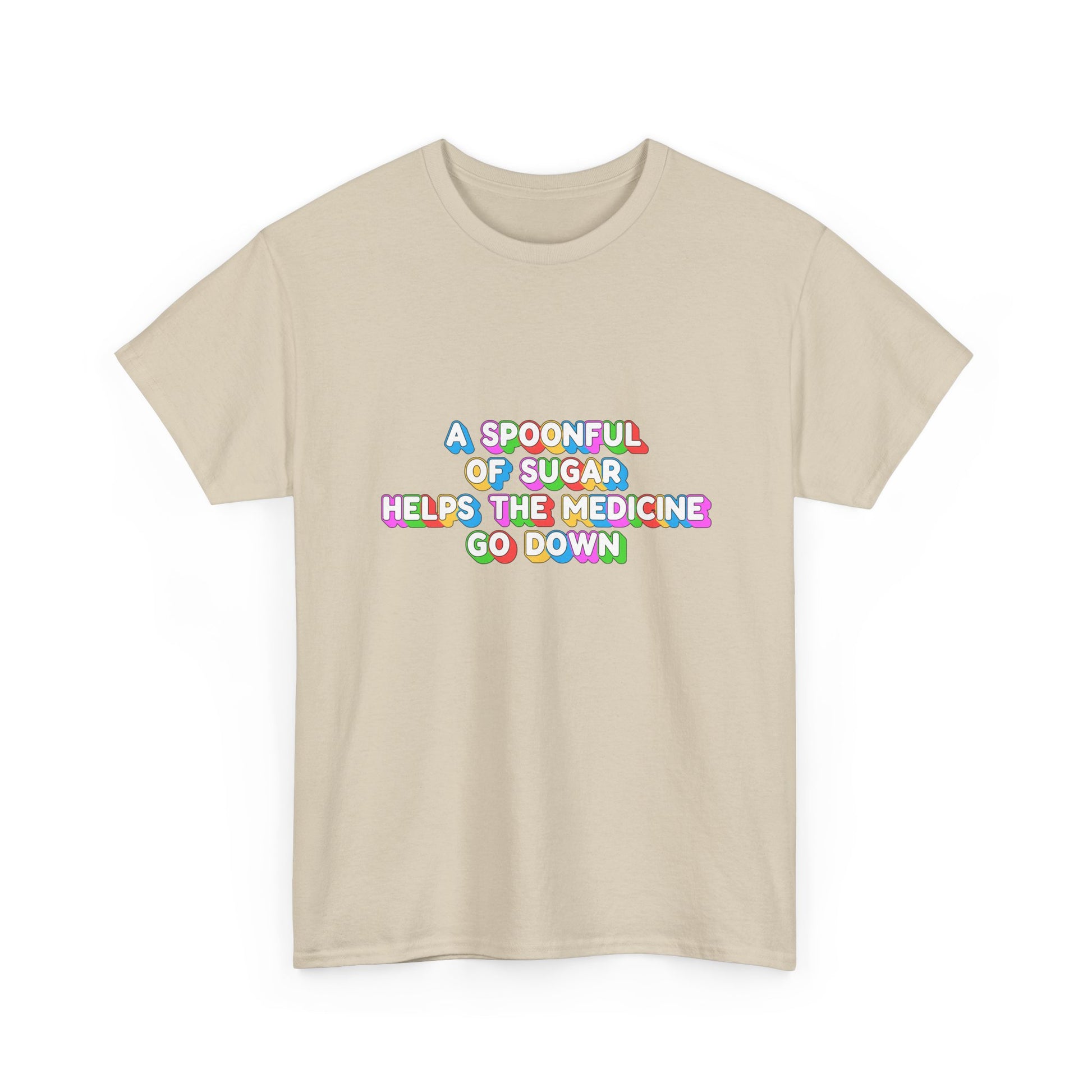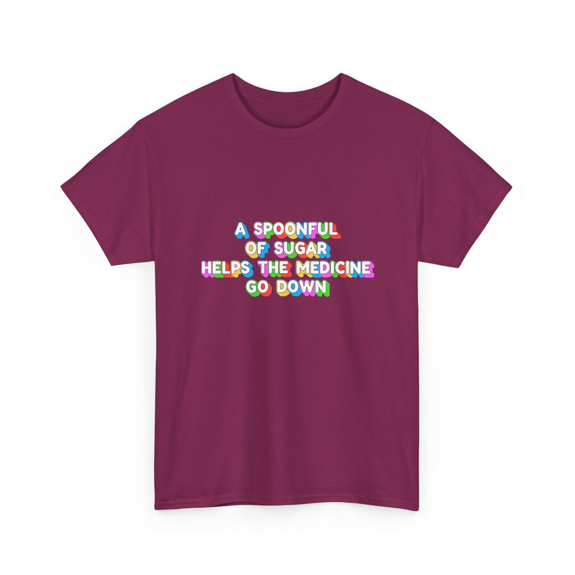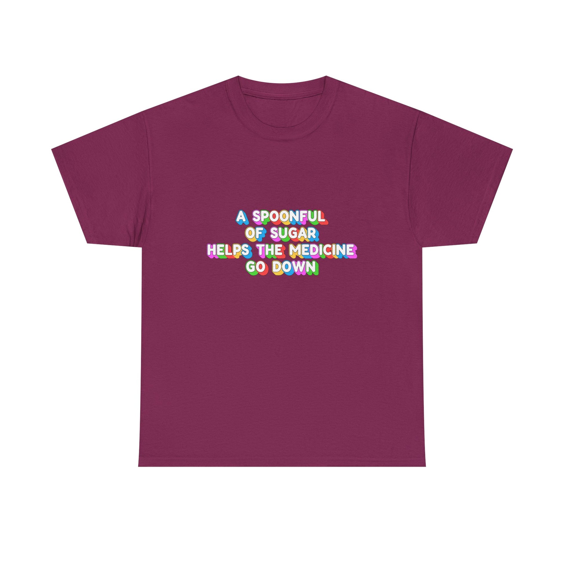 Music Nostalgia A Spoonful Of Sugar Unisex Tee, Retro Typographic Design Top, Artistical Expression of Colors T-Shirt