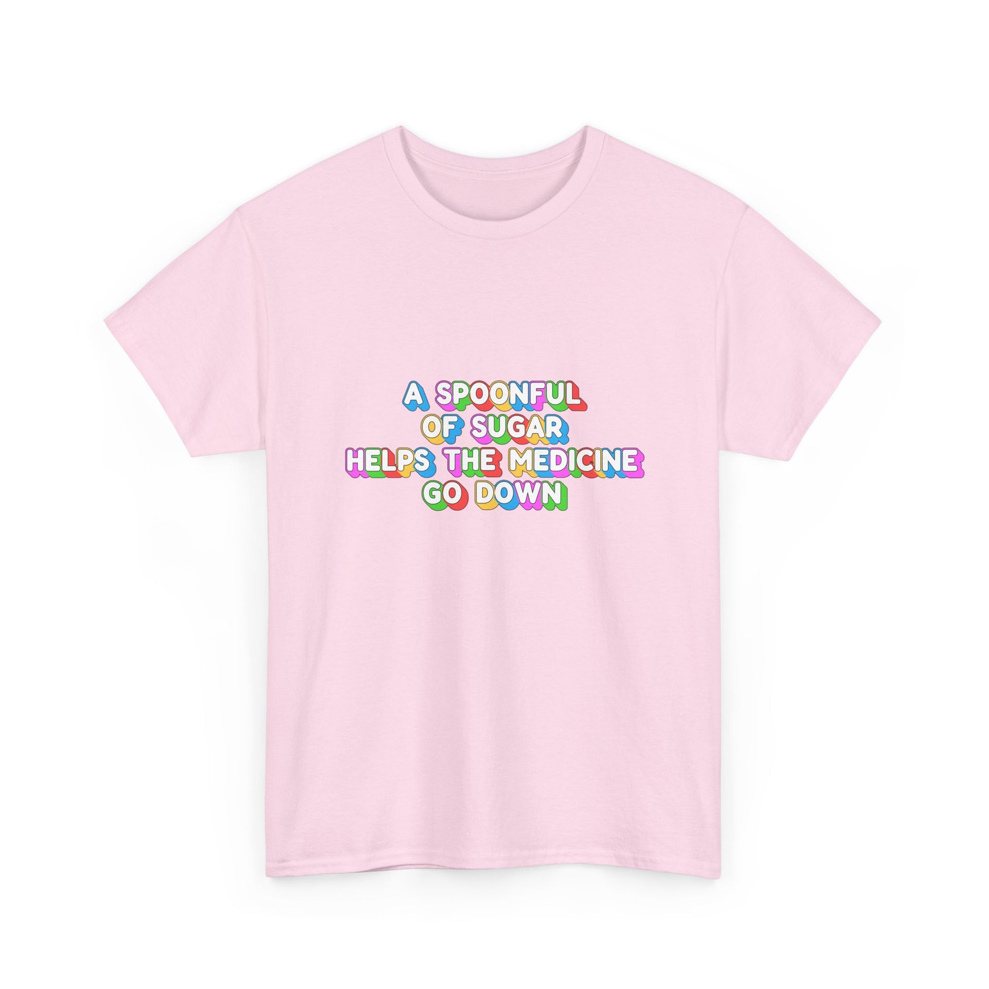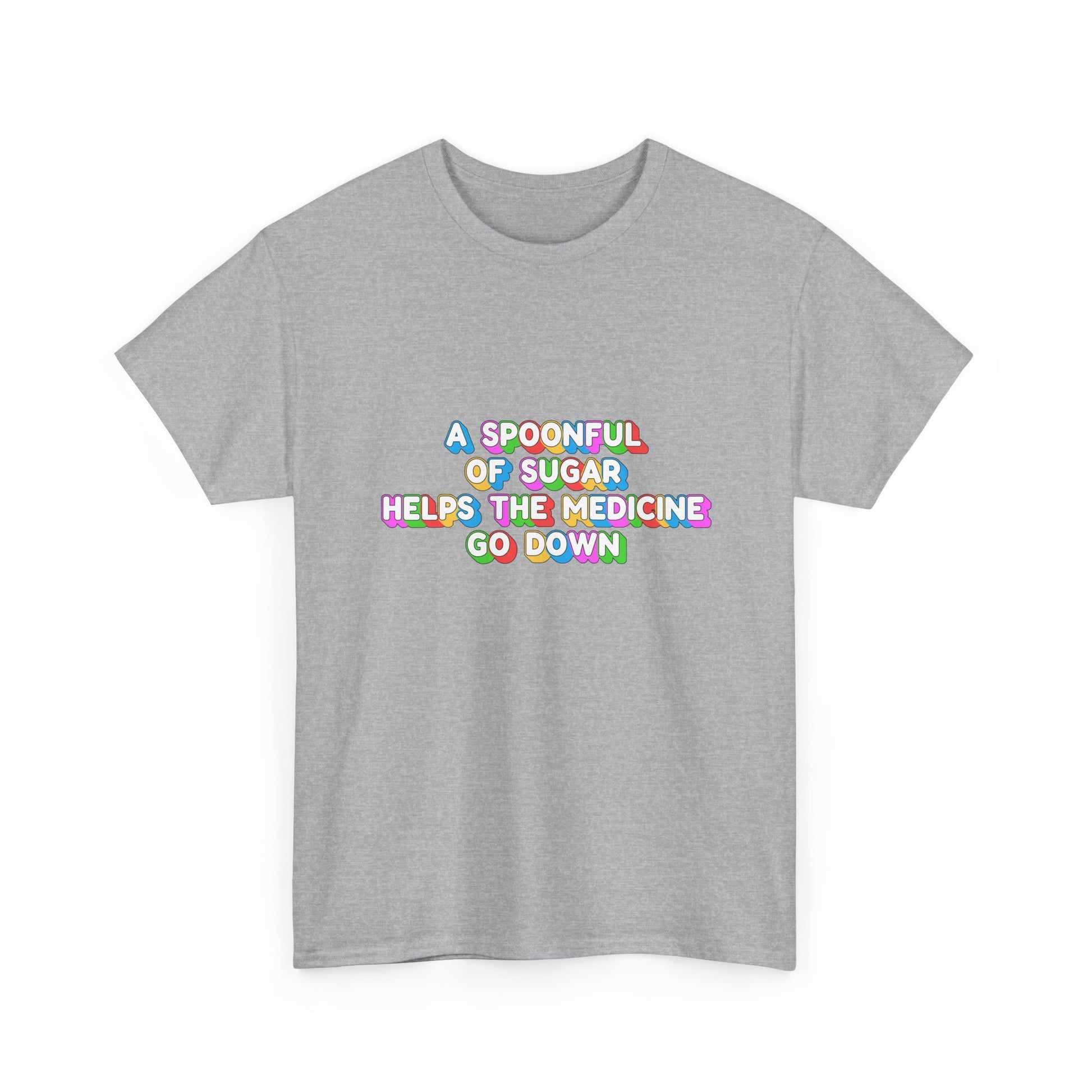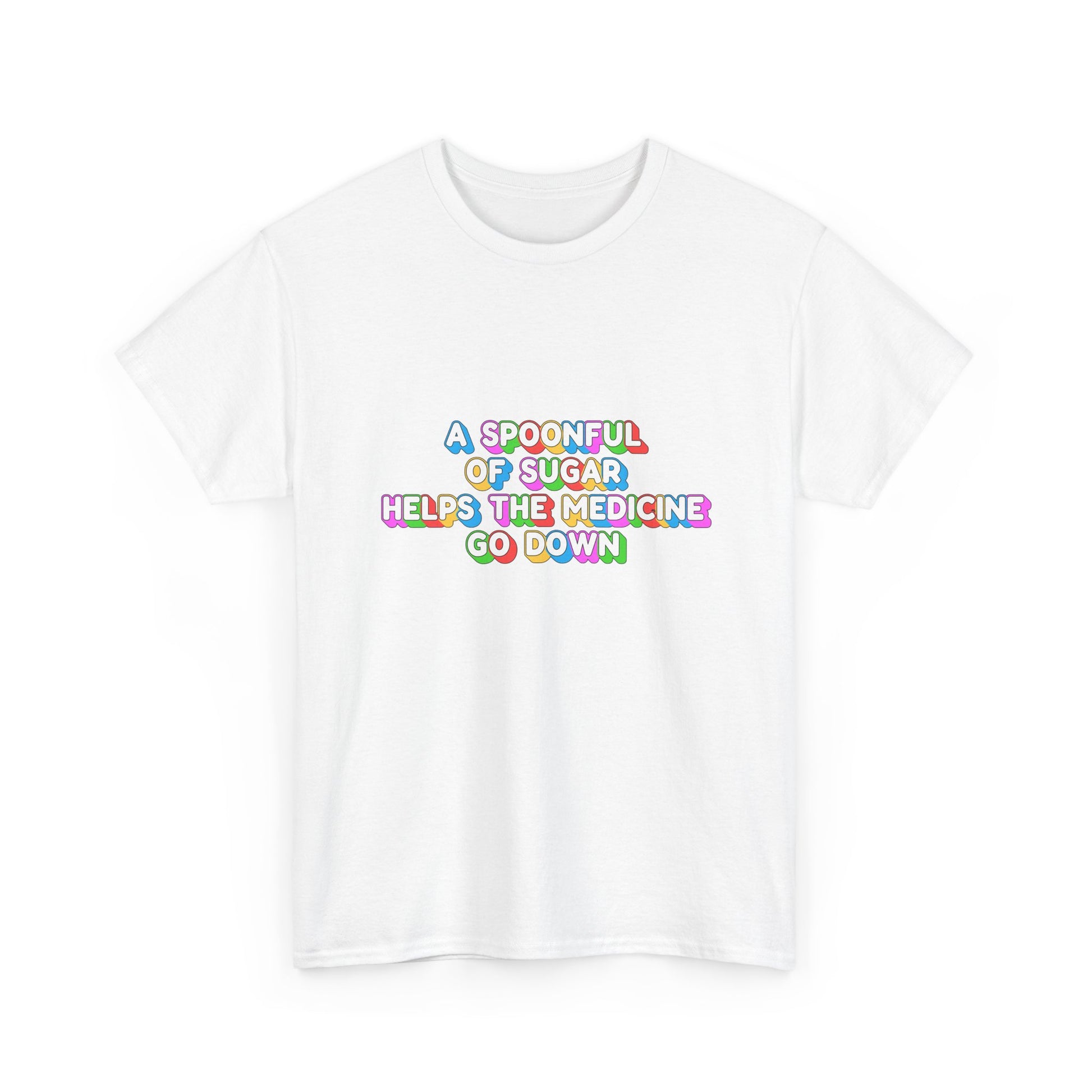 Music Nostalgia A Spoonful Of Sugar Unisex Tee, Retro Typographic Design Top, Artistical Expression of Colors T-Shirt