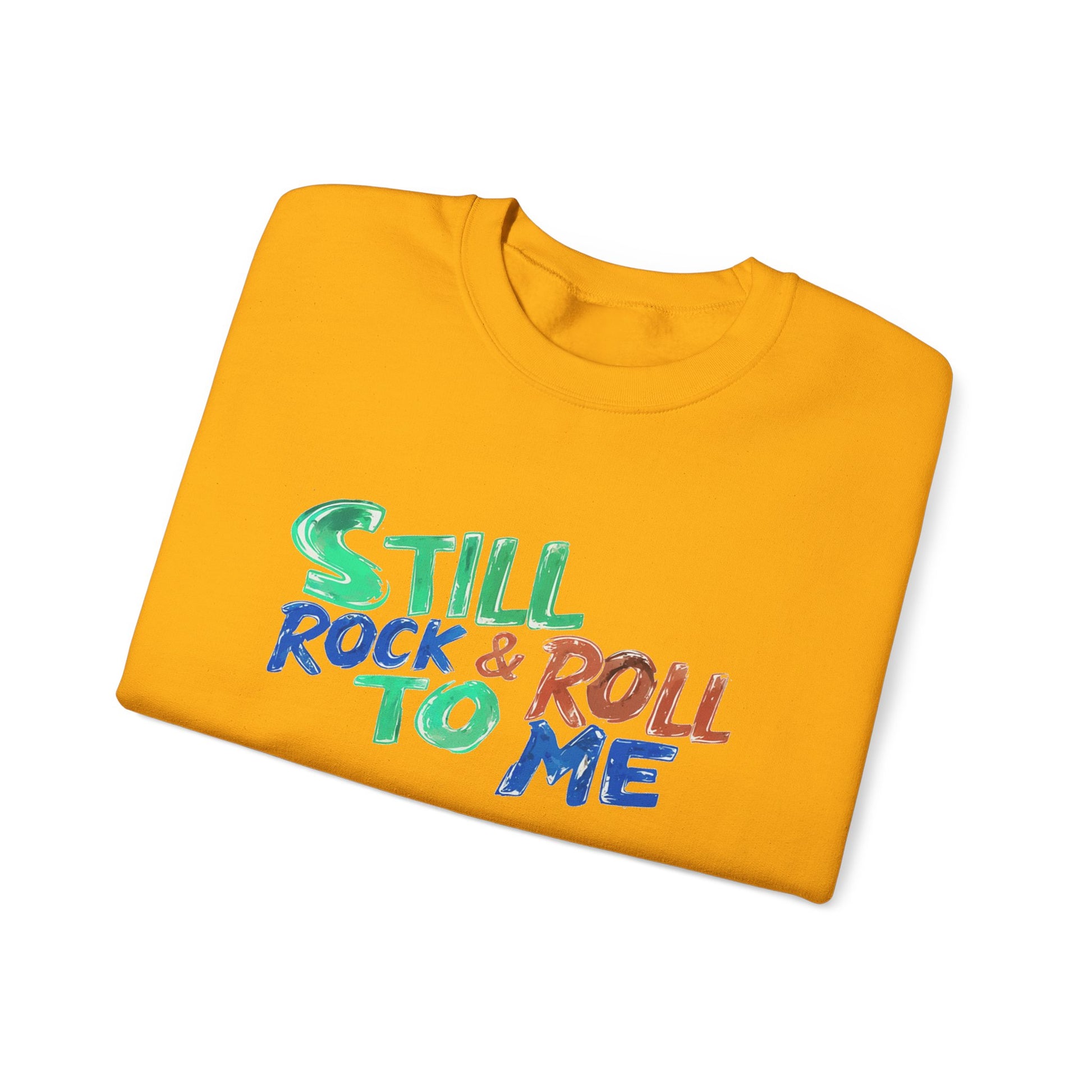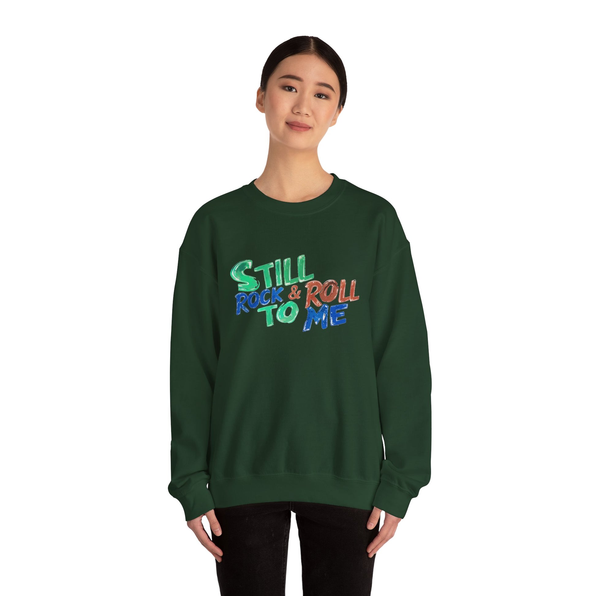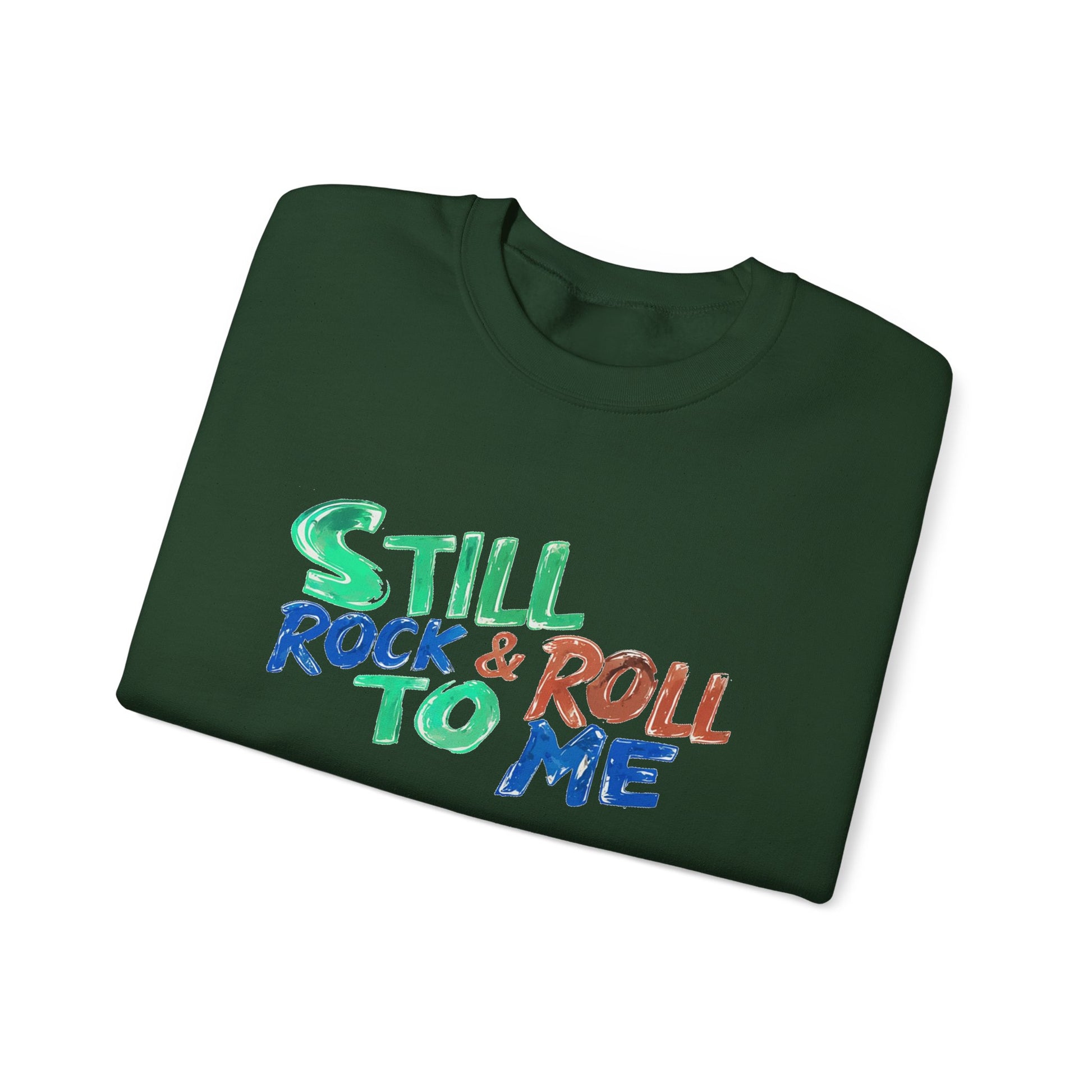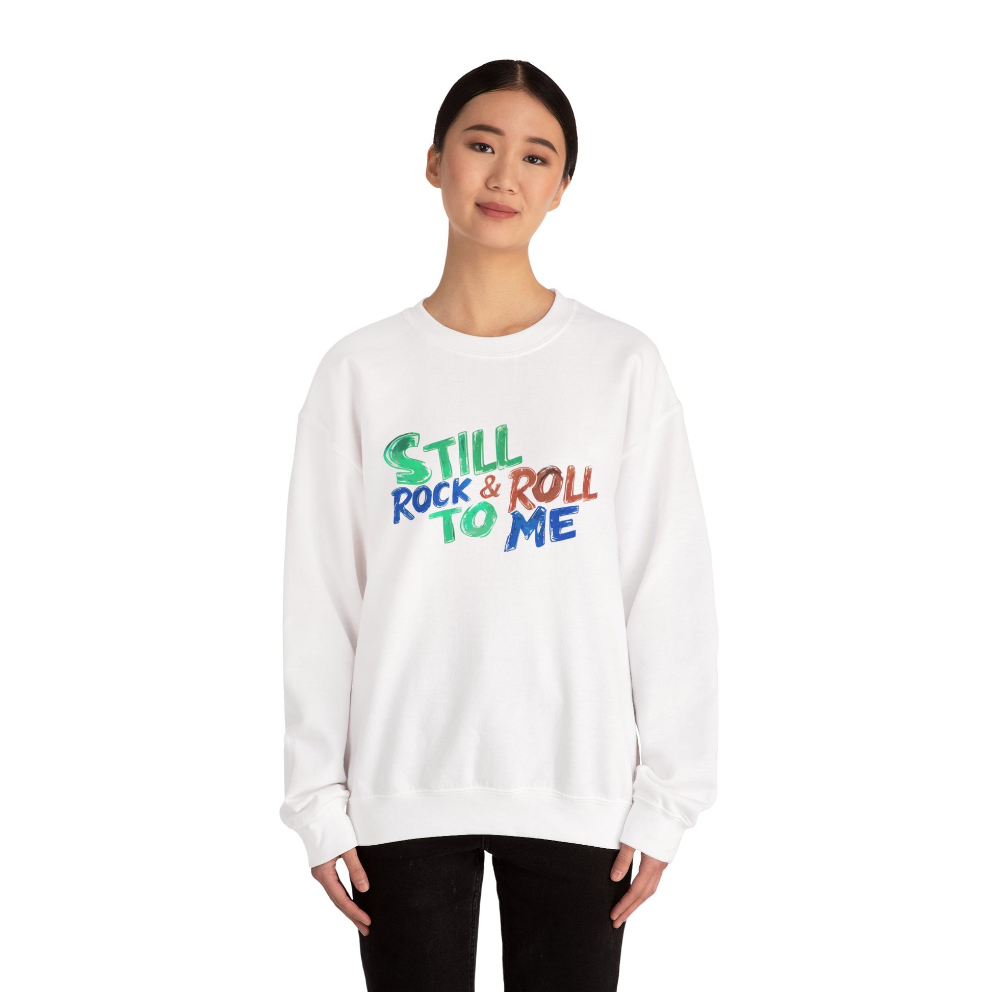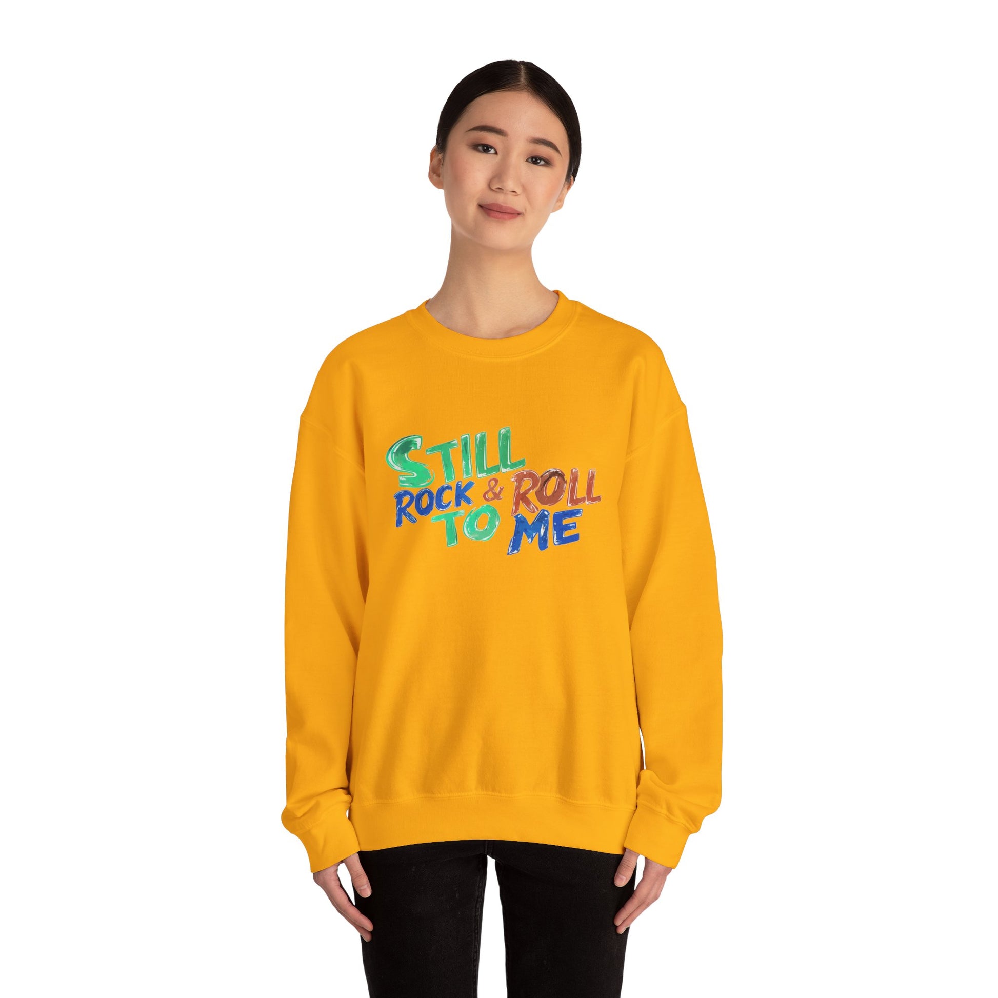Music Nostalgia 'Still Rock N Roll To Me' Unisex Sweatshirt, Colorful Retro and Hippie Style Top, Artistic And Colorful Typographic Design