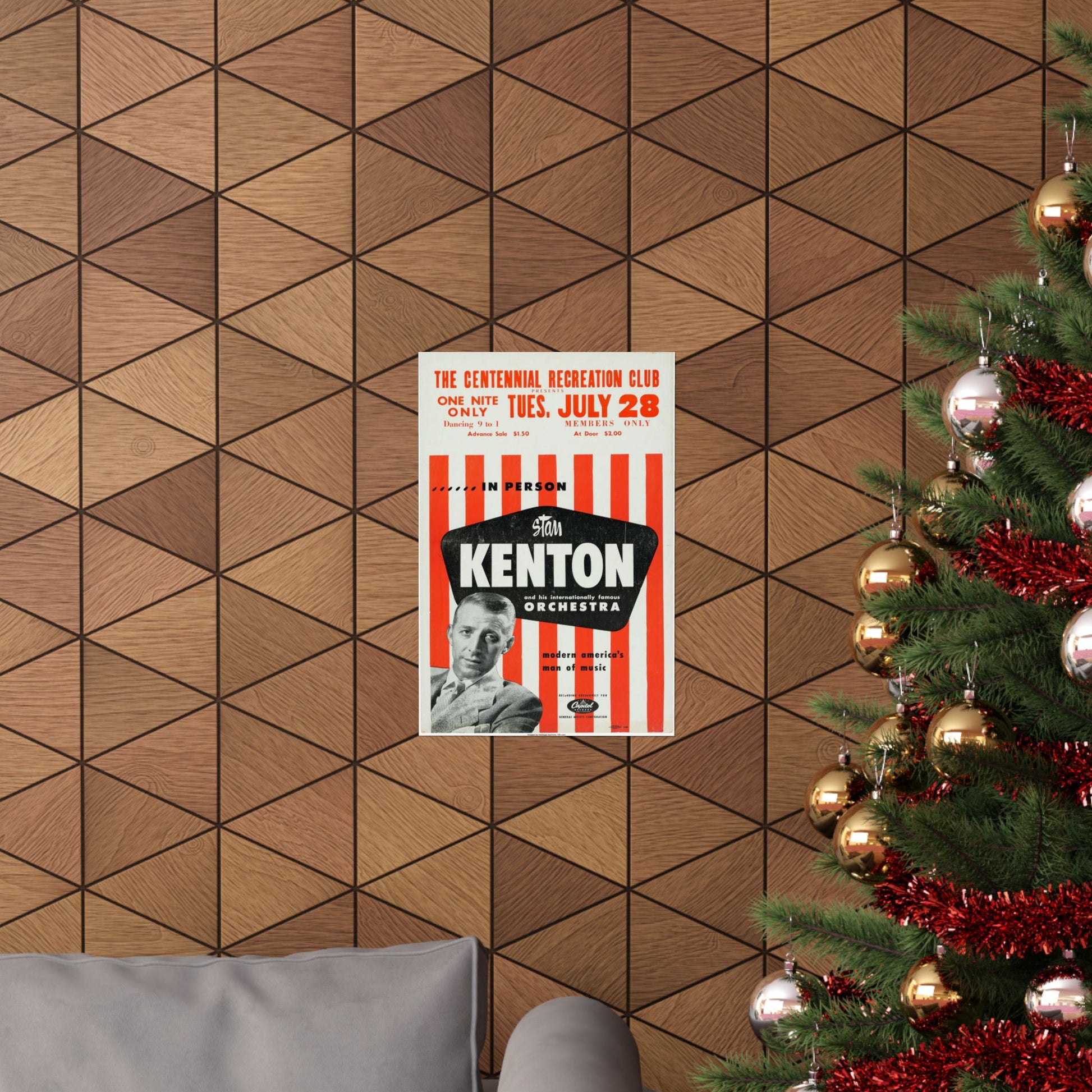 The Performer (Stan Kenton): Stan Kenton was a highly significant figure in 20th-century American music, known for leading one of the most innovative and enduring big bands. His orchestra was famous for pioneering Progressive Jazz and West Coast Jazz, moving beyond traditional swing into more complex, orchestral, and modern arrangements. The tagline "modern america's man of music" reflects his stature and innovative reputation at the time.