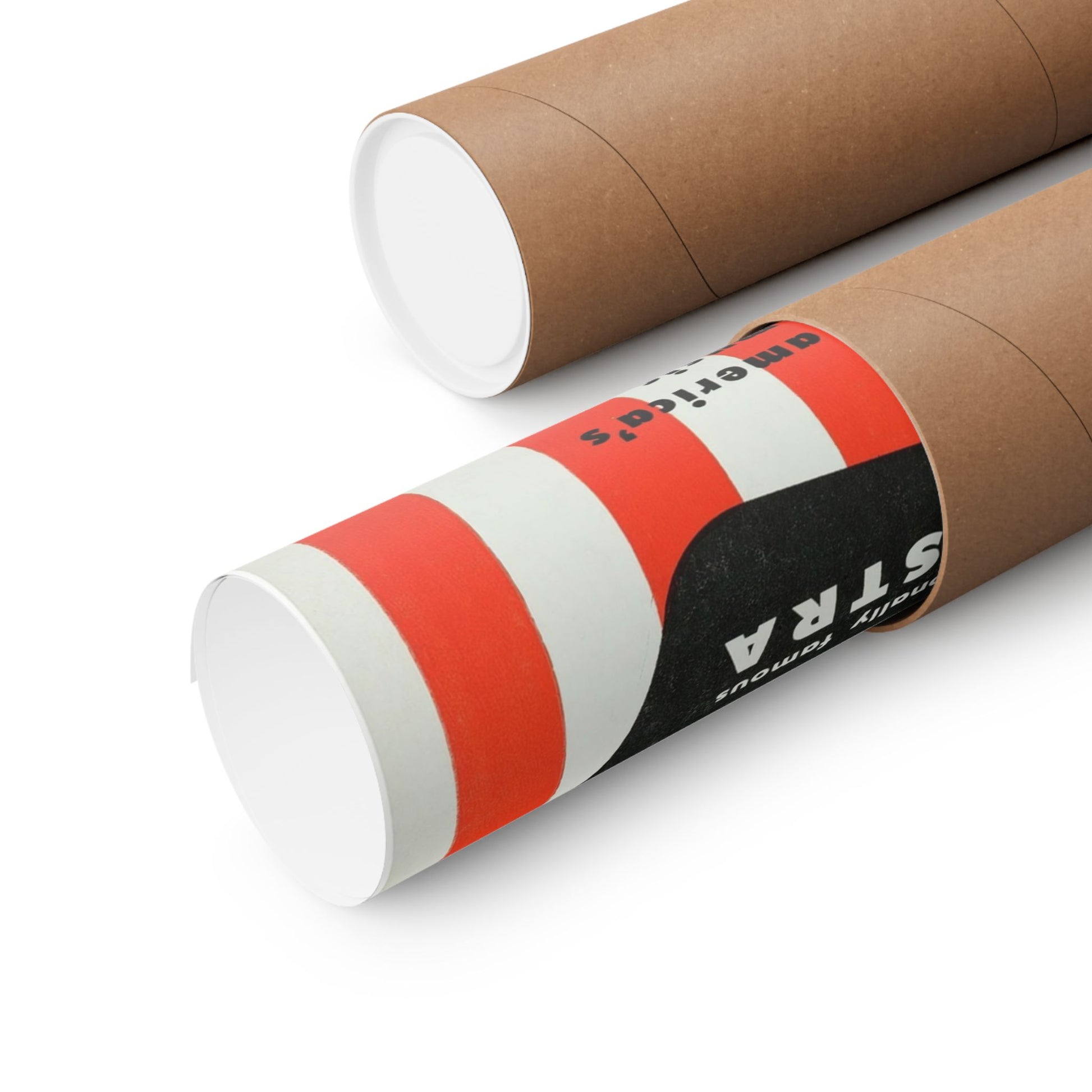 Graphic Stripes: The repetitive red vertical stripes across the background are a classic design motif used for maximum punch and visibility.