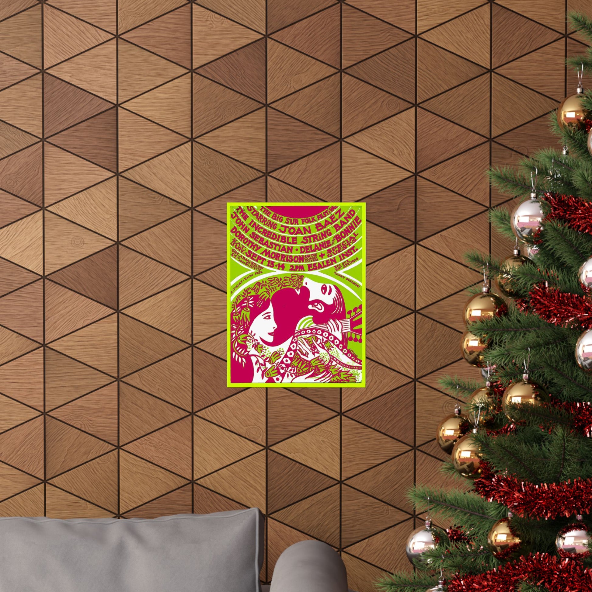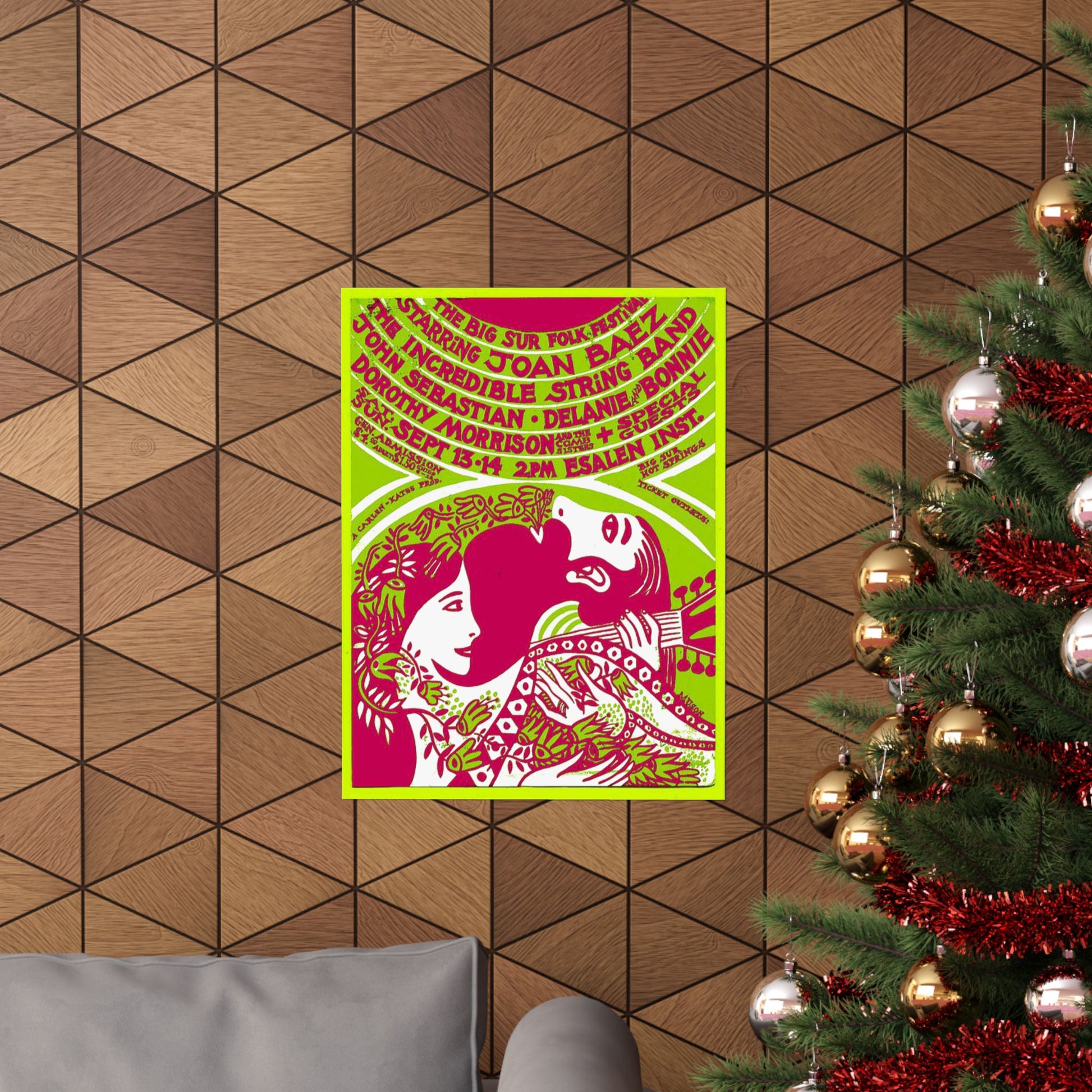 Vintage Joan Baez Big Sur Folk Festival Poster - 60s Psychedelic Art Print Esalen CA, Authentic memorabilia