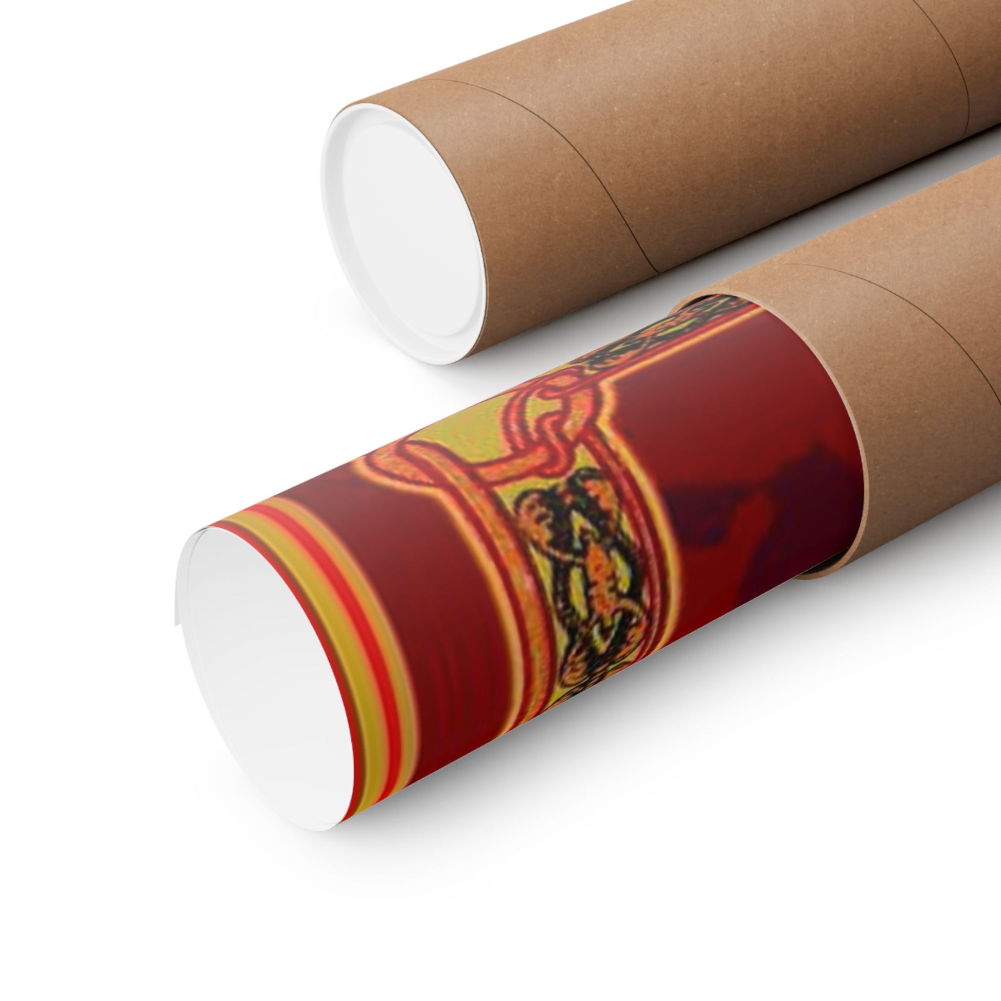 Aesthetic Style: The artwork uses an intense, warm color palette dominated by deep reds, golds, and oranges, giving it a very rich and vintage feel.