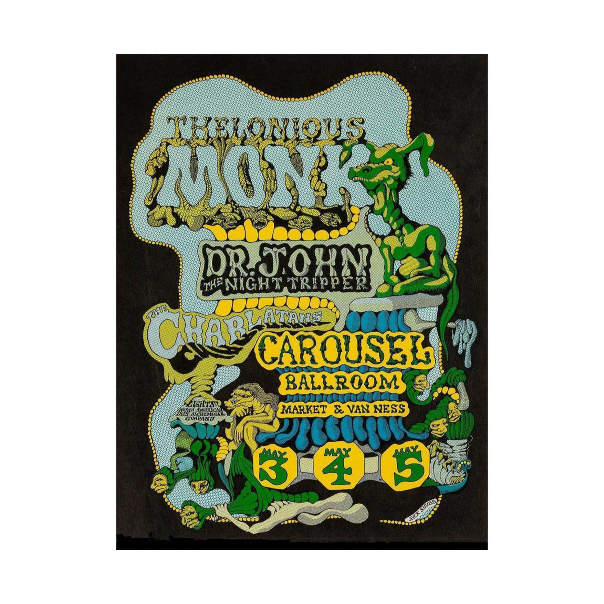 Vintage Thelonious Monk Dr. John Psychedelic Poster - Rick Griffin 1960s Style SF Carousel Ballroom